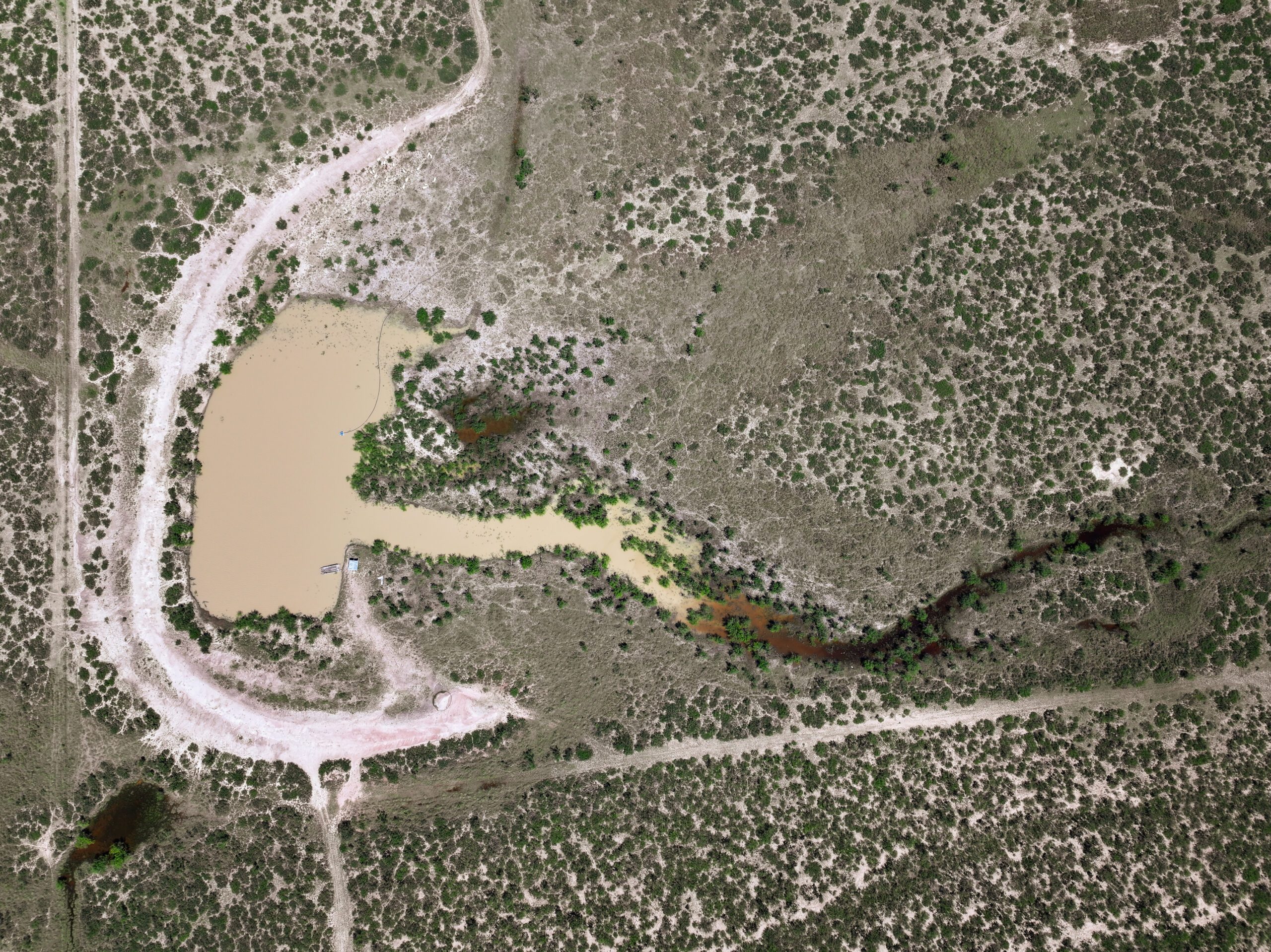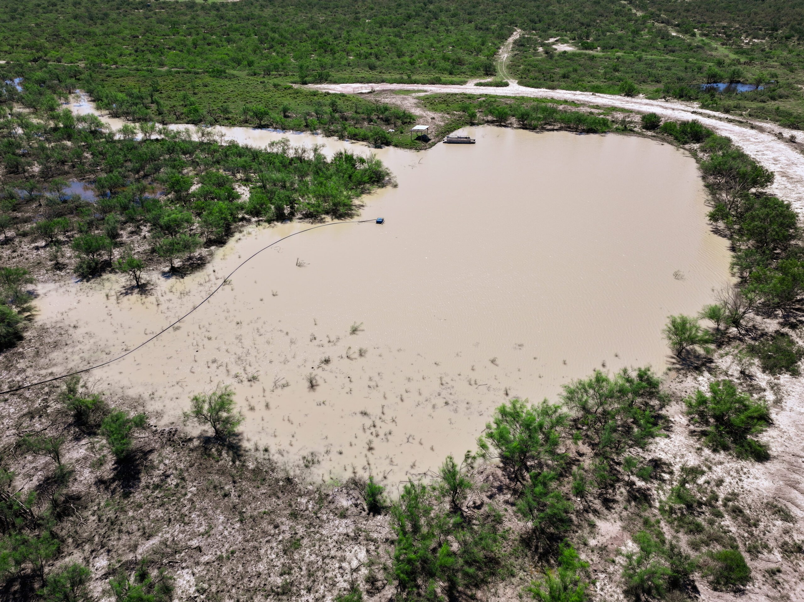 Water: A reliable well supplies a fully stocked1 +/-acre tank with bass, catfish, minnows, and perch, while also providing water to the camp and a frac pond.