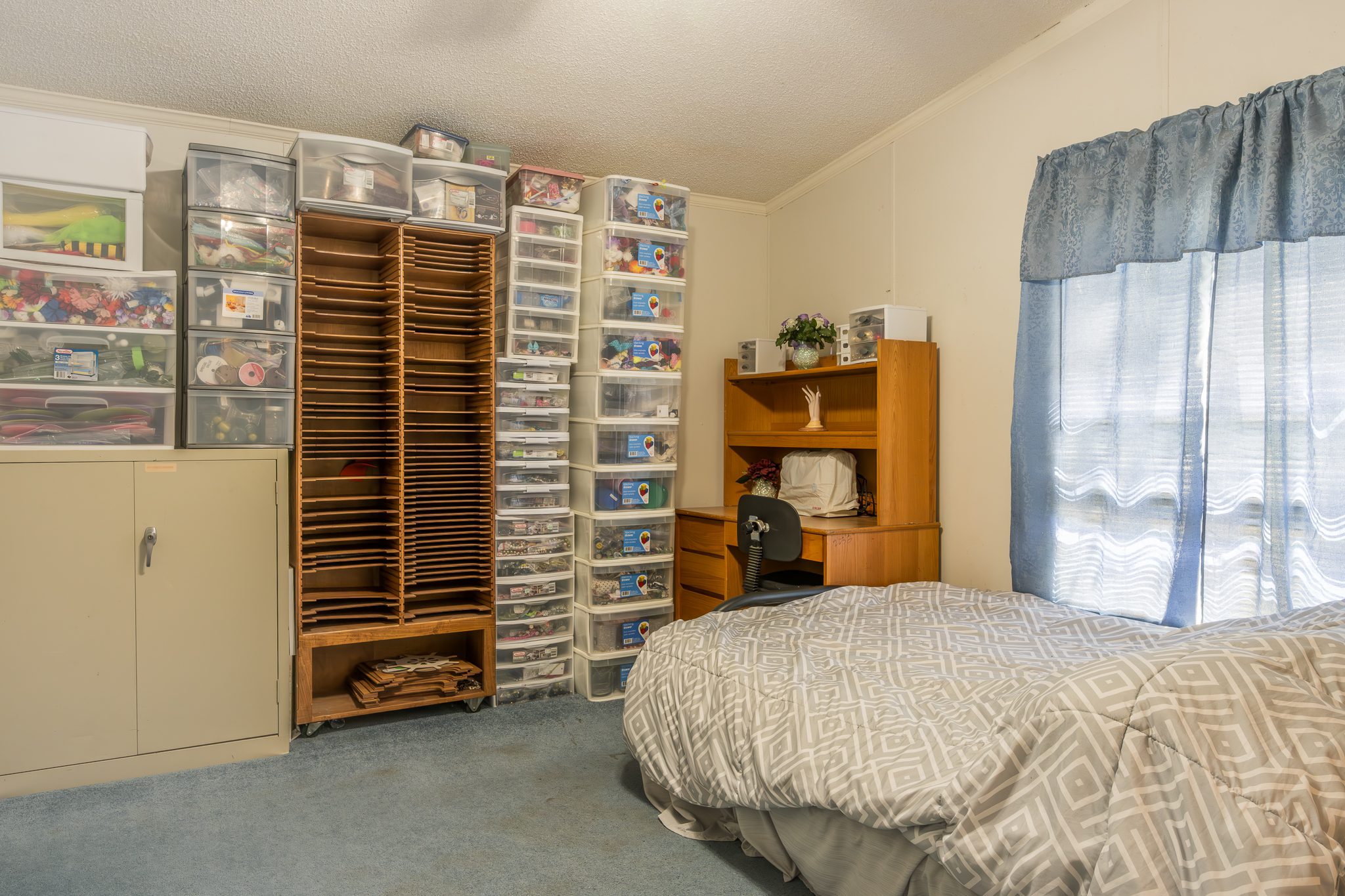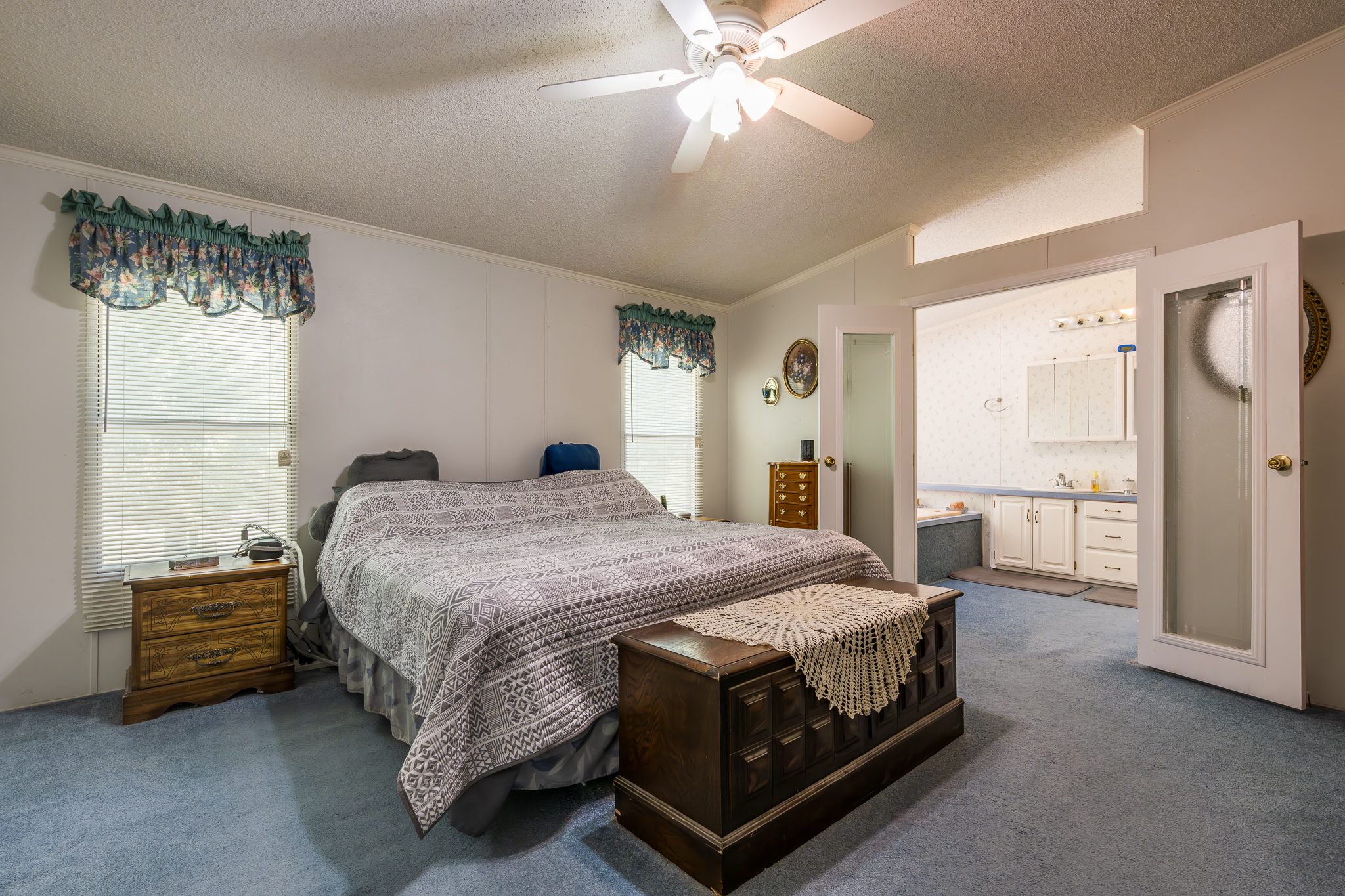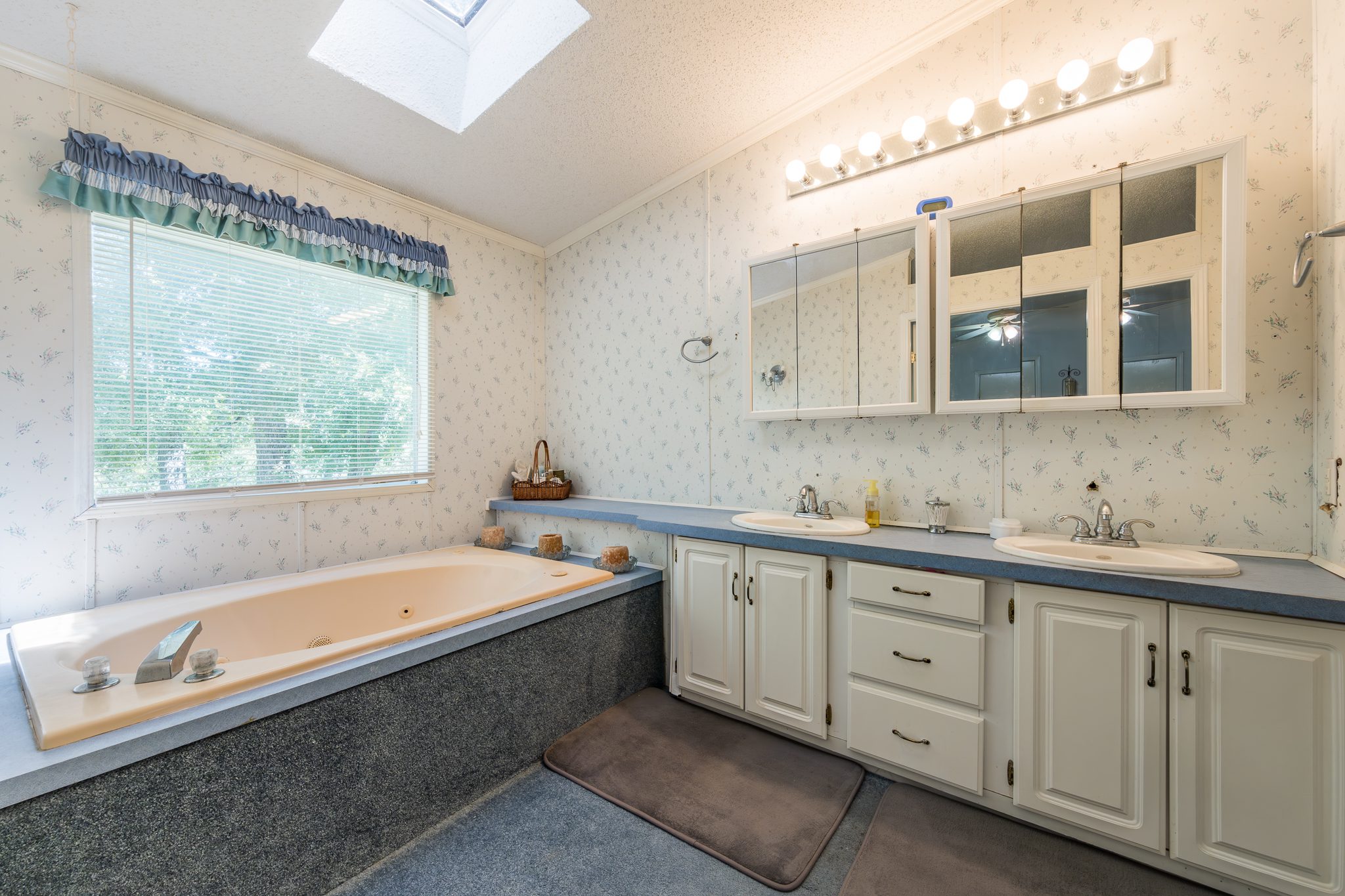 There are 3 manufactured homes on the property. In order of size, there is a 2,356 SqFt, 4B/3BA, Schult made manufactured home with a metal roof that was built in 1996. It features a master suite with an en-suite bathroom which boasts French doors, a spa bathtub, his/hers sinks, and a shower. There is also a walk-in closet. There are 3 additional bedrooms, 2 of which are connected by a Jack and Jill full bathroom. There is another full bath in the house as well. This home also has a spacious living room, a family room with a fireplace, a large kitchen area, dining room, sunroom, and laundry room.
