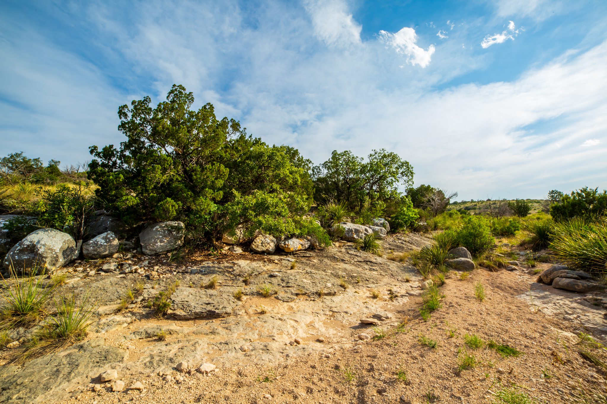 VEGETATION HABITAT AND SOIL: The topography and terrain of the Canyons Ranch provide excellent habitat and cover for wildlife. Shallow, rocky soils cover most of the ranch, with deeper, loamy soils in the bottomlands. This ranch supports a large diversity of browse, forbs, and grasses. There is light to moderate brush cover throughout most of the property except the far East side, the low country on the North end, and some canyon bottoms that are more heavily wooded. Red Berry Juniper and Mesquite are the primary trees, with Oak trees dotted throughout the ranch. Other browse types include Lotebush, Yucca, Sotal, Catclaw, and Prickly Pear. A few of the more notable grasses on the ranch include Sideoats Grama (the state grass of Texas), Blue Grama, Black Grama, Buffalograss, Little Bluestem, and Green Sprangletop. The growing season generally begins in the middle of May and ends towards the end of September.