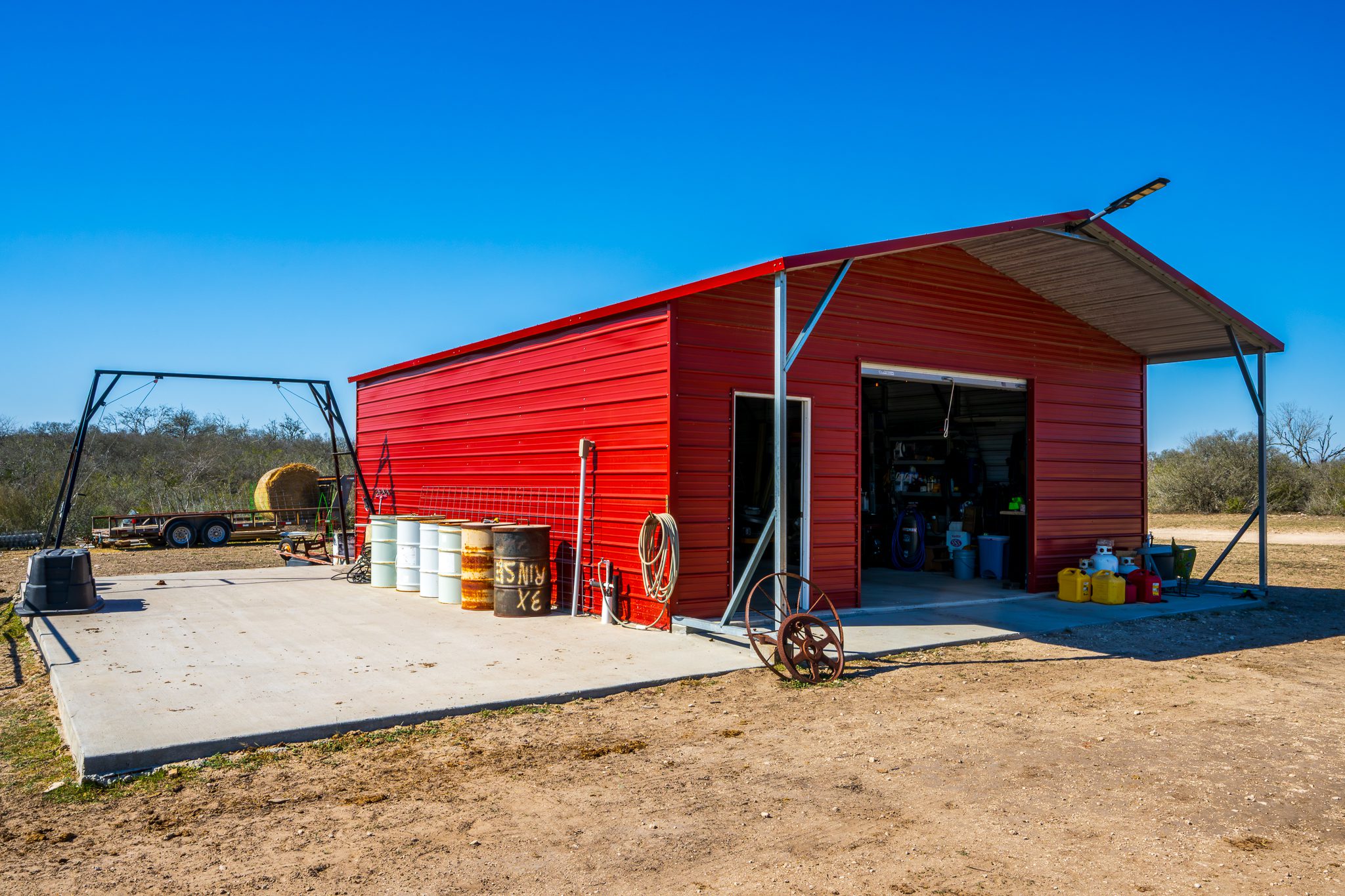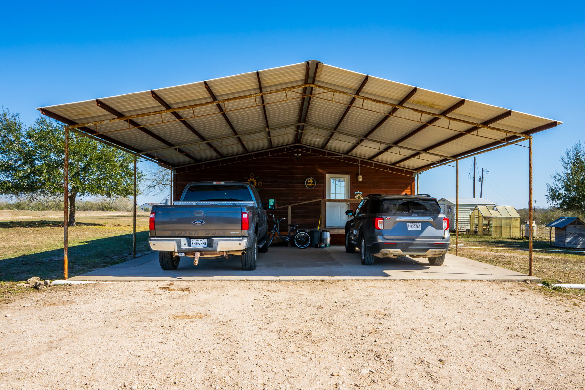 The ranch features a well-maintained 1,620 sqft wood-frame home built in 2014 that provides comfortable accommodations for owners and guests. The residence includes two bedrooms, two bathrooms, a utility room, and a covered carport, making it well suited for weekend use or extended stays. Located near the home is a 24 x 31 metal barn constructed in 2020 on a concrete foundation and equipped with two 9 roll-up doors, offering excellent storage and workspace for ranch equipment and vehicles. An additional 15 x 30 concrete slab is located adjacent to the barn, providing flexibility for future improvements or additional storage needs.