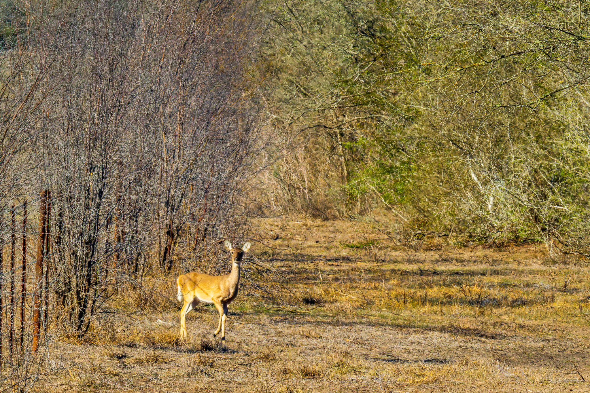 Goode Ranch sustains abundant native wildlife, including white-tailed deer, feral hogs, quail, dove, and turkey, making it a strong hunting destination. The diverse brush and browse species found on the ranch are known to be attractive to deer and other game throughout the year, and the fully enclosed game fence enhances wildlife management and hunting opportunities.