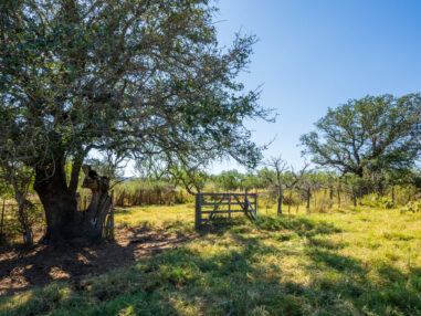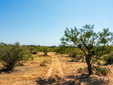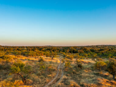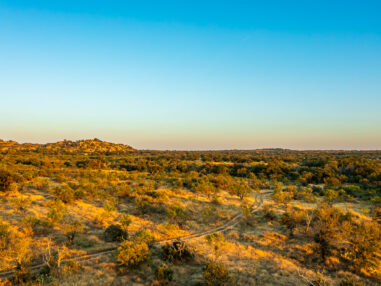 The landscape features beautiful granite outcroppings, gently rolling terrain, and sweeping Hill Country views that create an unmistakable sense of place. Scattered throughout the ranch are majestic live oaks, towering post oaks, and healthy mesquites, along with a variety of native vegetation typical of the area. A seasonal wet-weather creek winds through the property, enhancing the natural character and supporting abundant wildlife habitat.