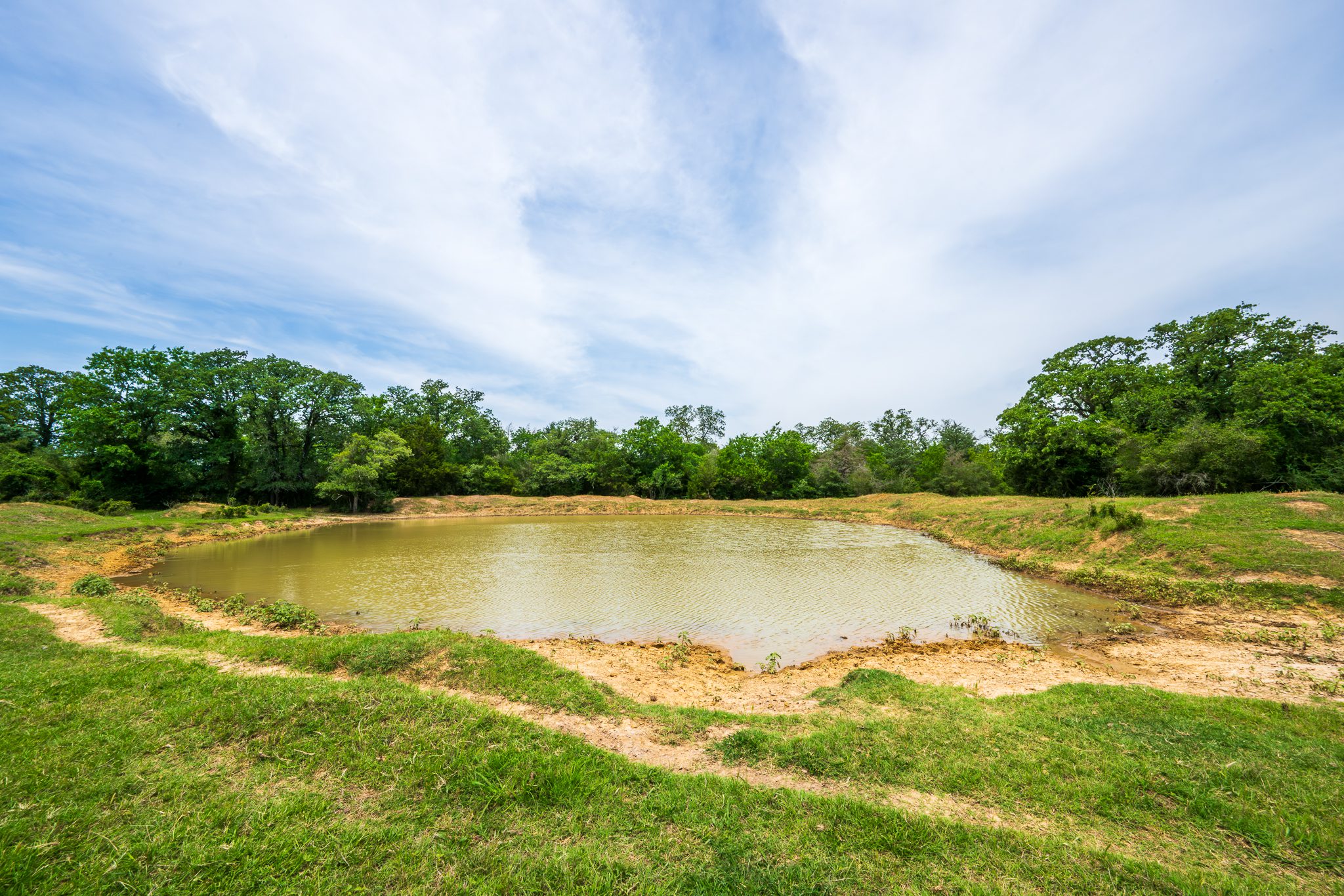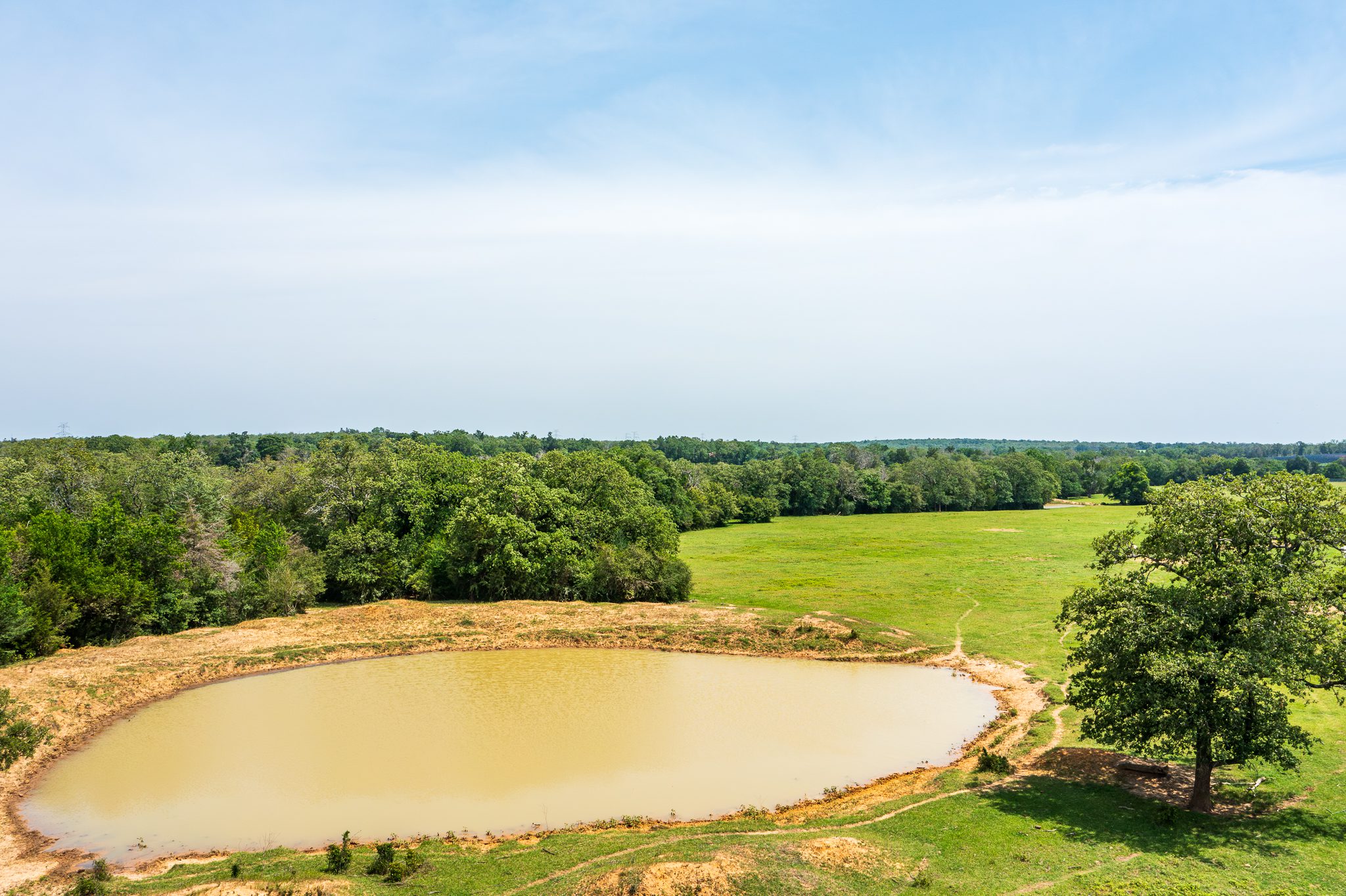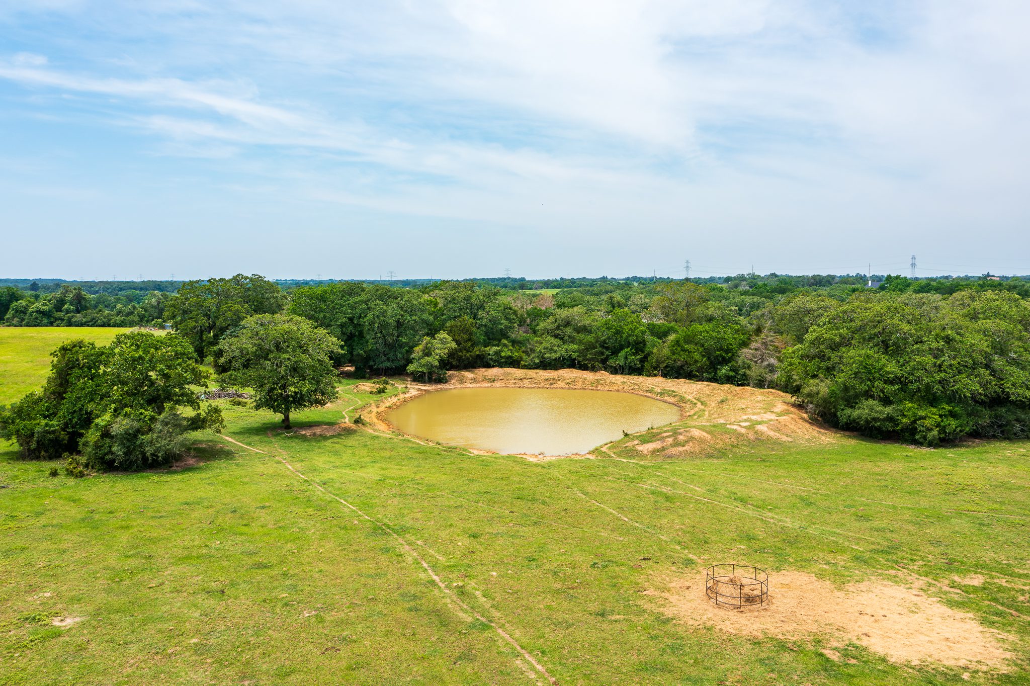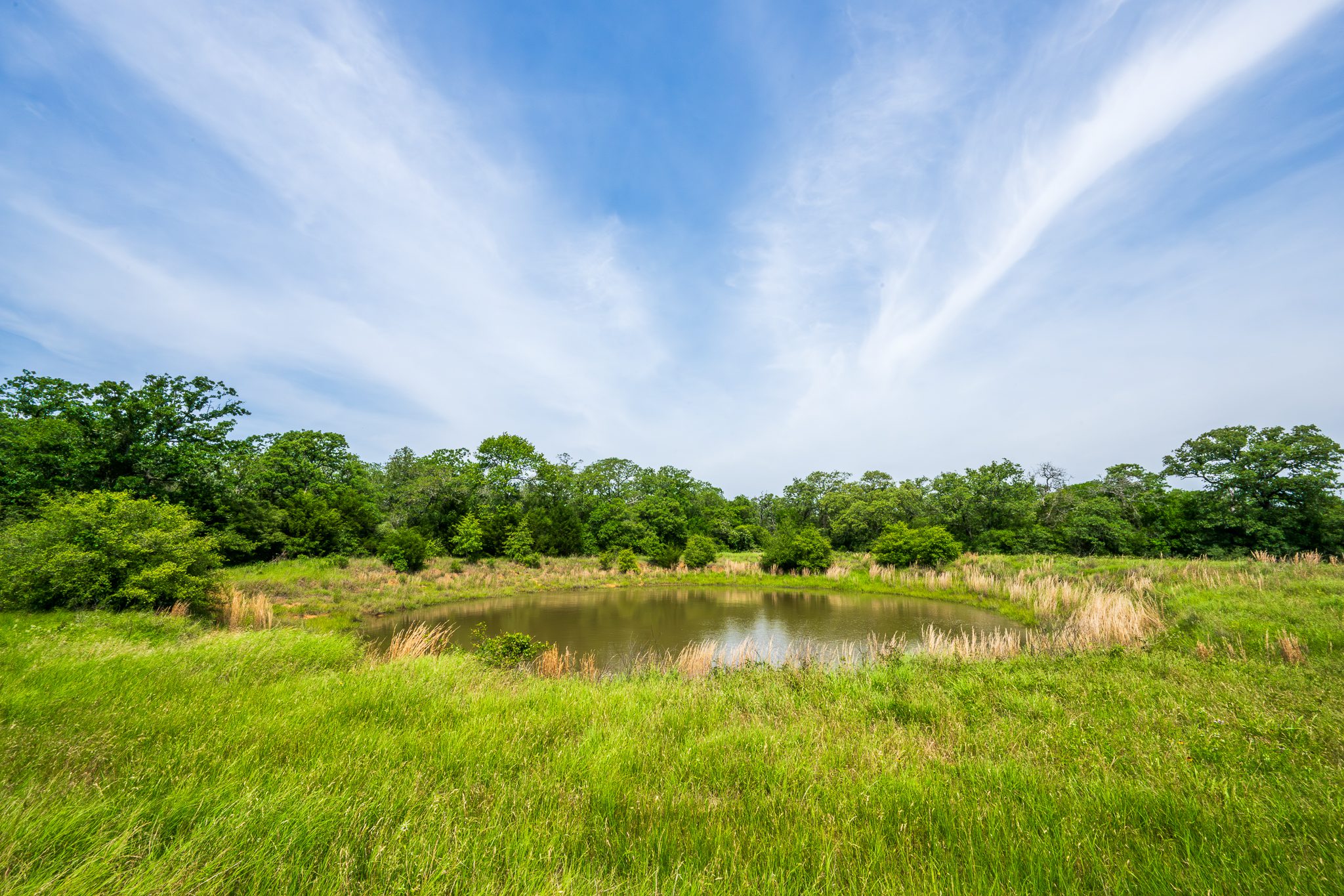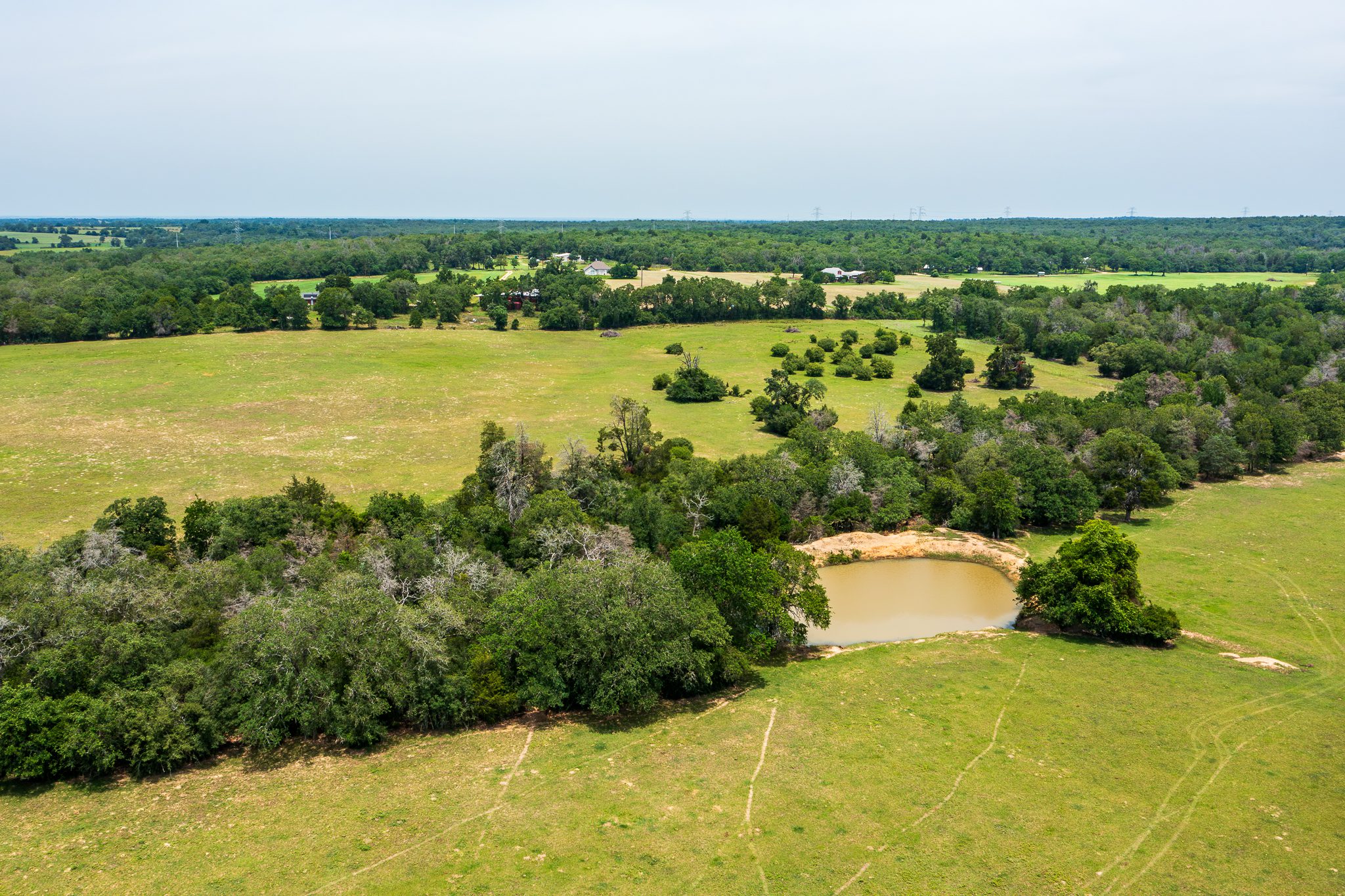 The ranch is well-suited for cattle grazing and hay production, with improved grasses throughout and well-placed stock tanks providing reliable water for livestock and wildlife. Scattered mature post oaks and yaupon thickets add character to the landscape, offering shade, privacy, and excellent wildlife cover.