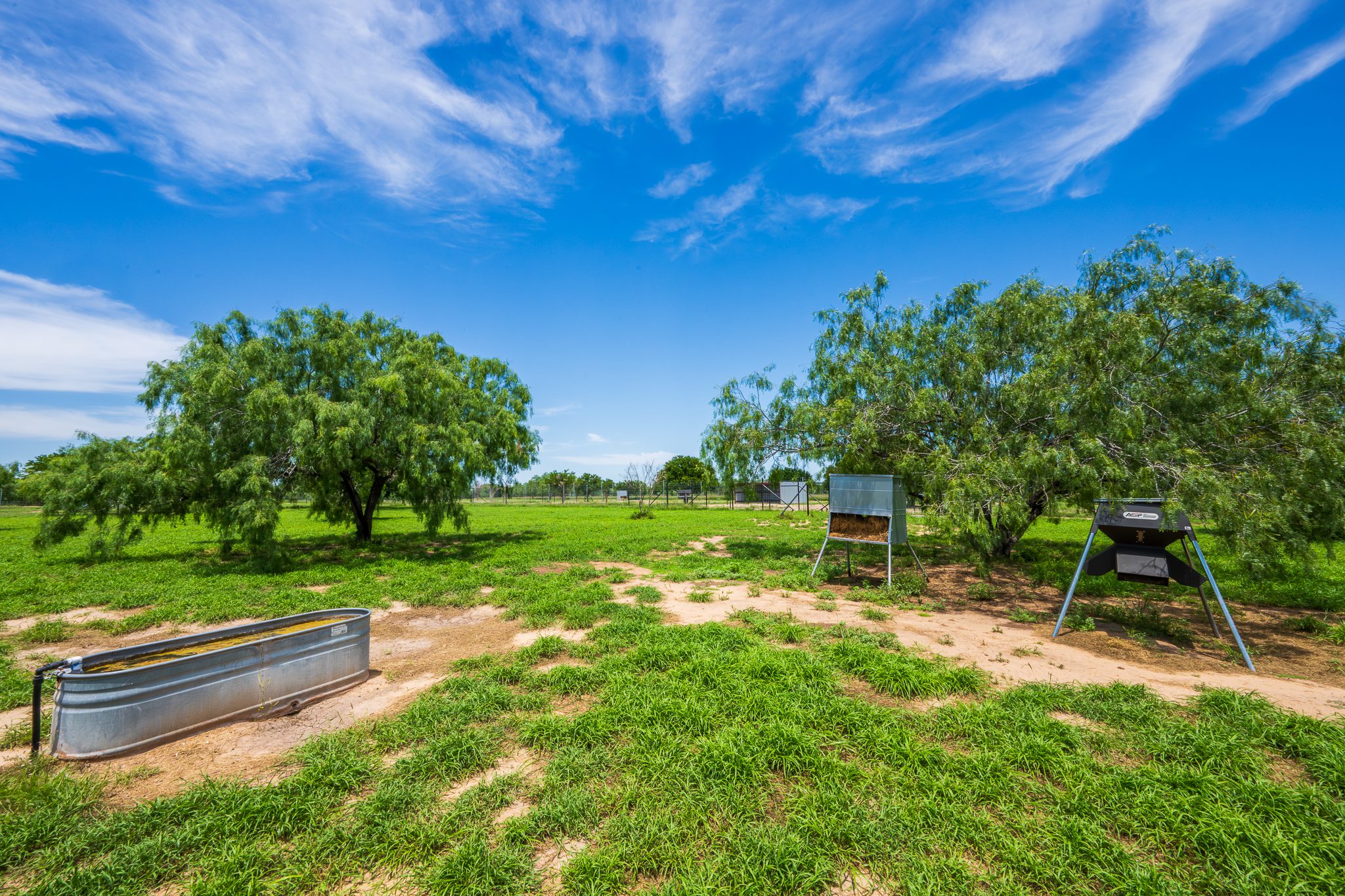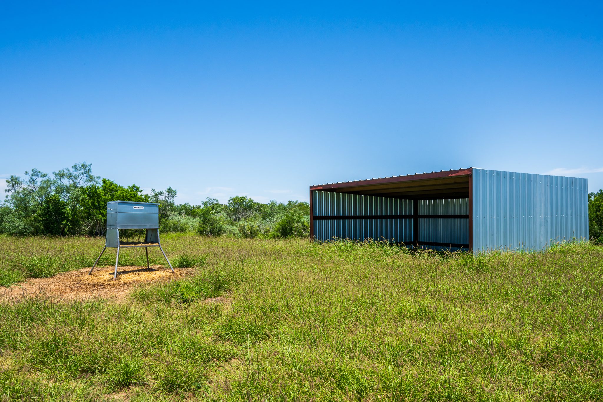 There are 8 new separate breeding pens each with a shed for shade located north of the barn located towards the front portion of the ranch. The barn has an enclosed area for storage with a concrete floor. An electric water well with a submersible pump supplies the property water to two water troughs in the back pasture as well as to each pen. Two large blinds and several protein and corn feeders are included. Theres also a nice earthen stock tank in the back pasture hunting area with several acres cleared around it with only big trees left surrounding it.