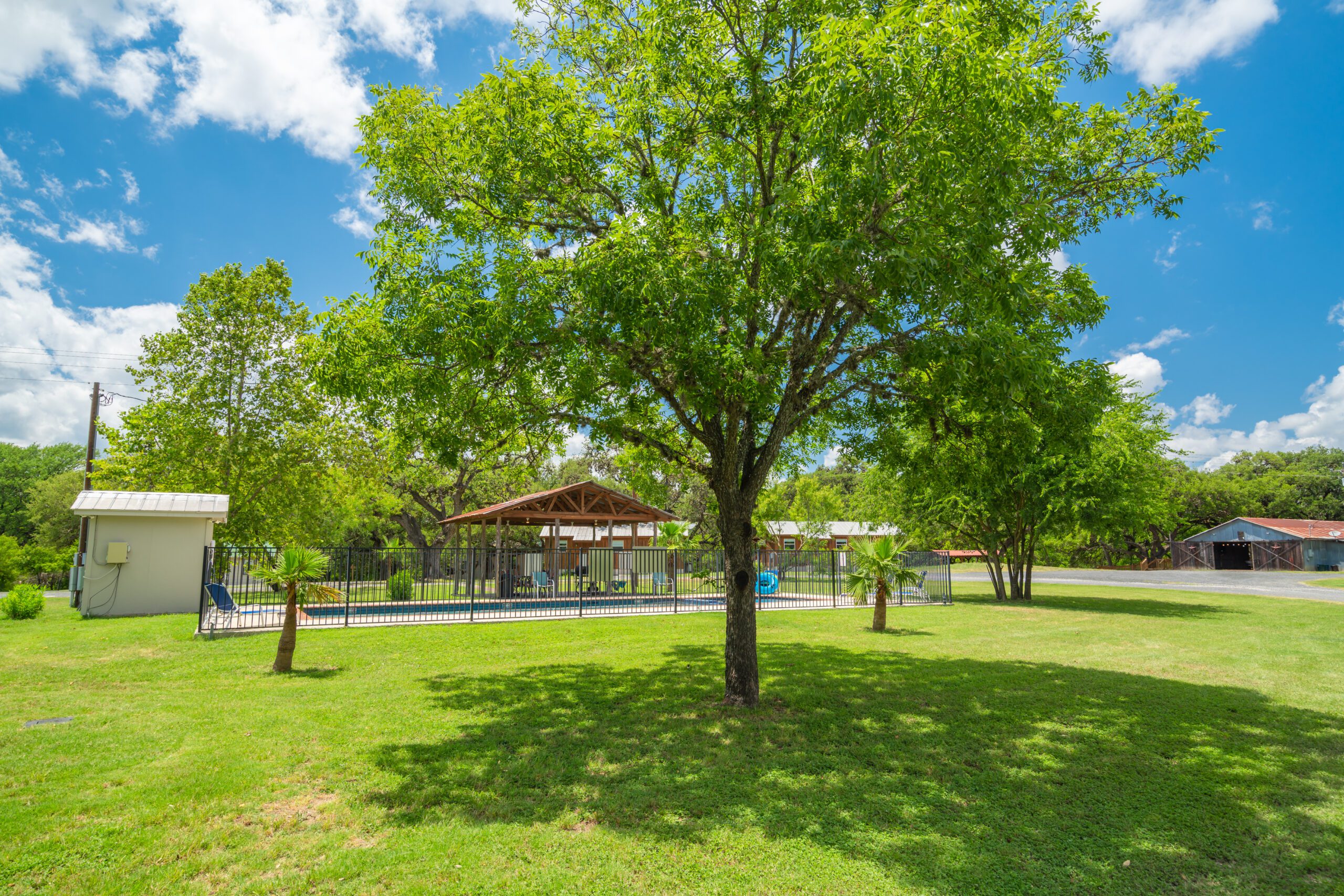Set in the heart of the Sabinal and Frio River Canyons, the event spaces regularly play host to weddings, family reunions and numerous other events. Whether it be along the banks of the cypress tree lined river, on one of the lawns under magnificent live oak trees, or in the fully enclosed elegant rustic barn with attached deck and gazebo, the 12-acre property offers numerous possibilities for events of almost any size.