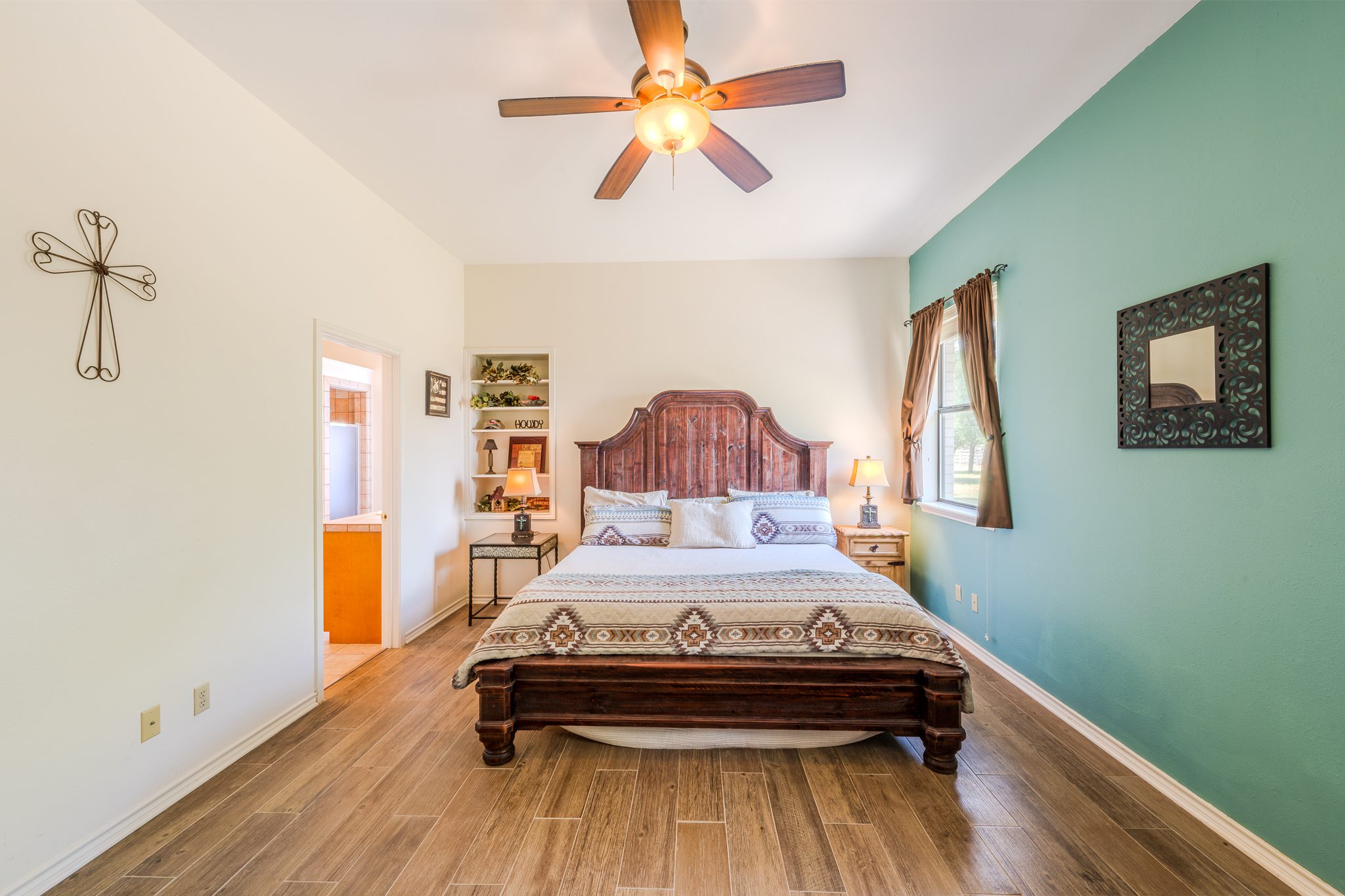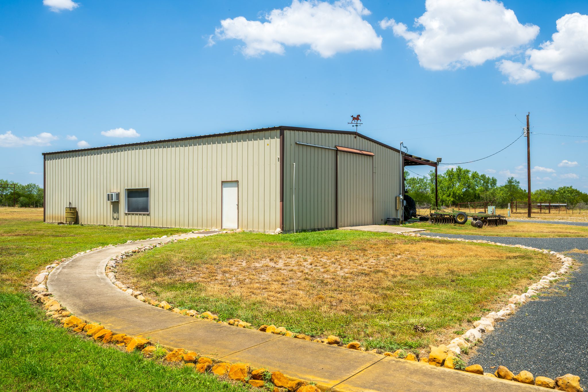 Supporting the home is a 40’ x 60’ enclosed metal barn on a concrete slab, with an attached 20’ x 60’ equipment shed for tractors, implements, or additional storage. Inside the barn is an air-conditioned workshop, a bathroom, and guest quarters that can comfortably house visitors or ranch staff. These improvements make the ranch well-suited for both day-to-day operations and hosting family or friends.