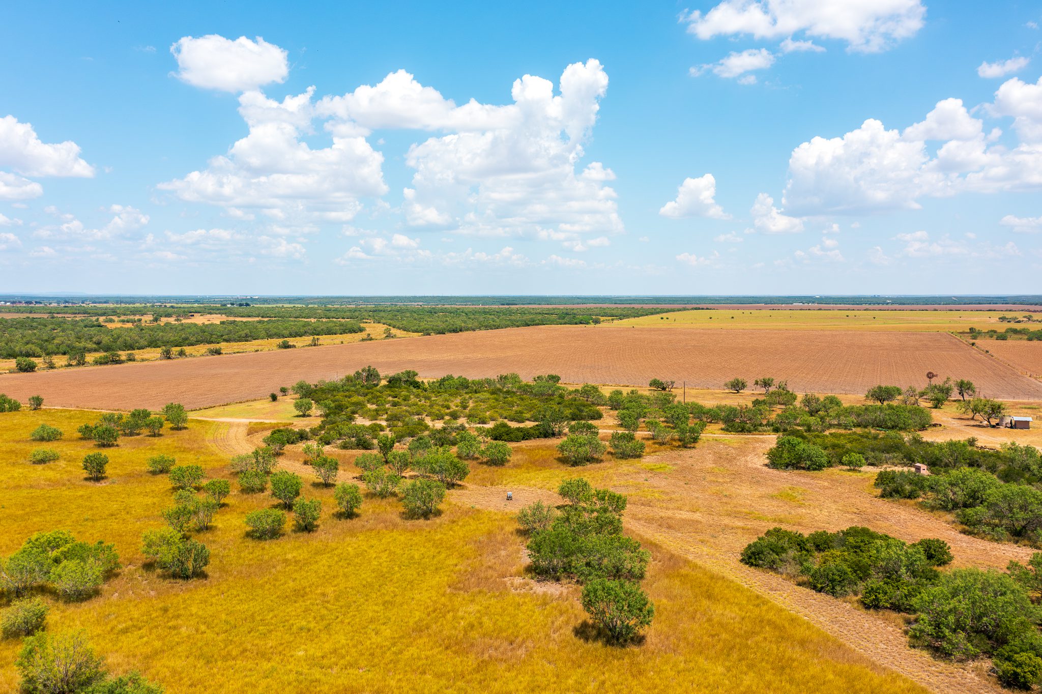Vegetation: Roughly 25% of the ranch remains in native South Texas brush, creating excellent wildlife habitat and natural cover. Brush species include guajillo, blackbrush, persimmon, whitebrush, granjeno, huisache, and others. Native trees such as mesquite, elm, hackberry, and live oak are also scattered across the property. The remaining 75% is farmland and improved pasture planted in Klein grass, bluestem, and Tifton 85 Bermuda, providing ample grazing and hay production. This combination of brush and improved pasture creates both agricultural value and strong hunting appeal.